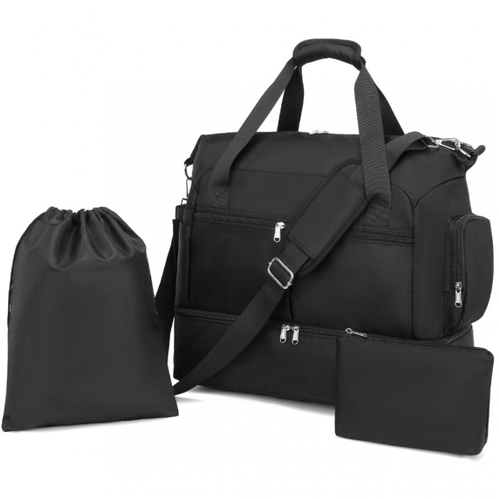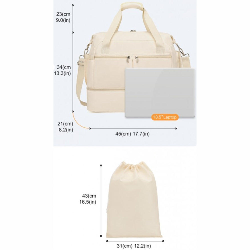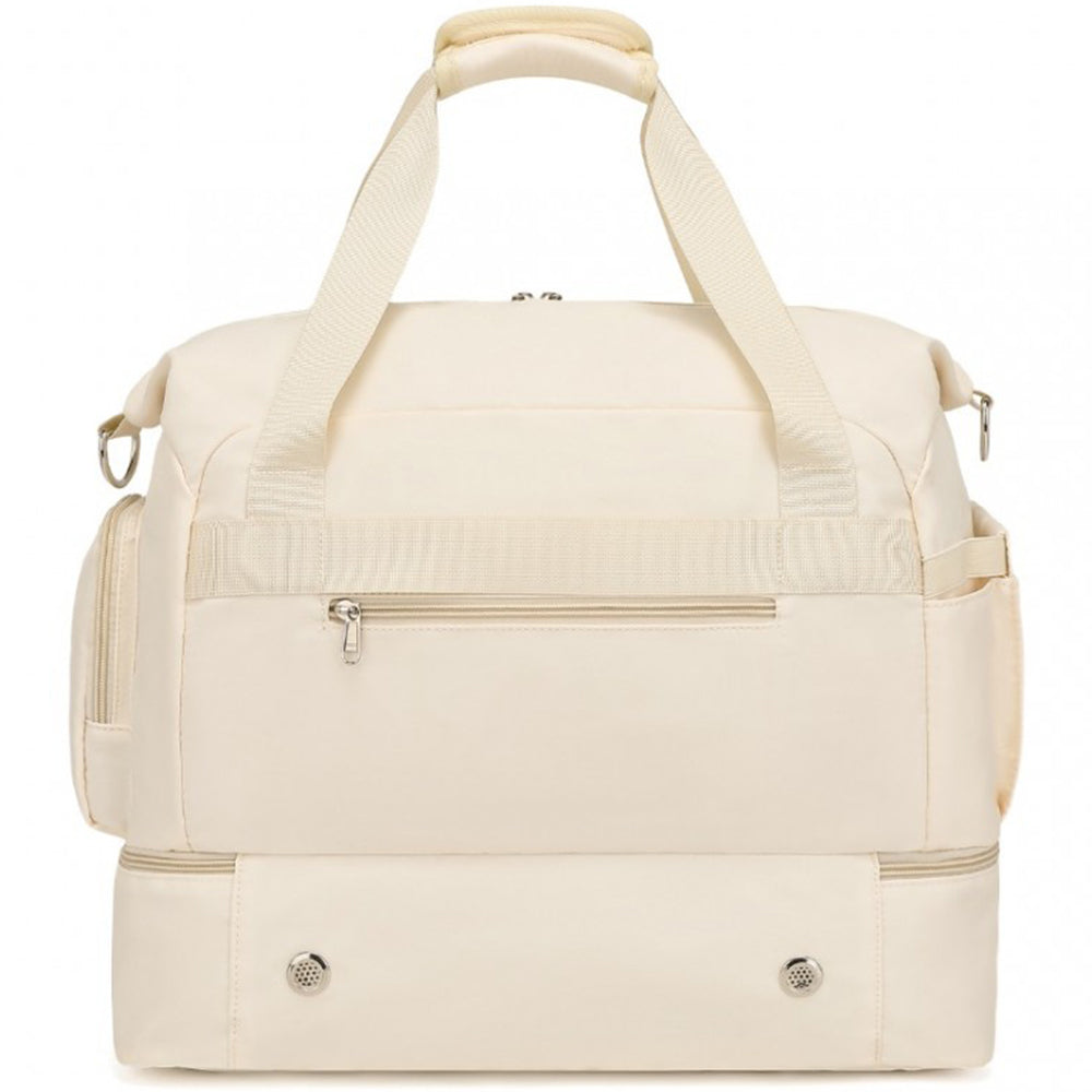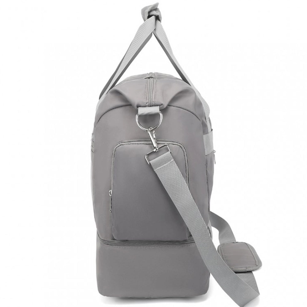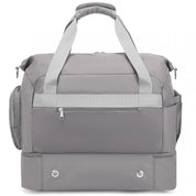Compartimentul principal contine doua buzunare frontale pentru articole mici, completate de un buzunar din spate cu fermoar care asigura o separare eficienta intre umezeala si uscata. Partea inferioara a gentii are o caracteristica inovatoare: un compartiment independent pentru pantofi cu orificii de aerisire, accesat printr-un fermoar dublu, asigurandu-va ca pantofii raman separati de haine. Exista un alt buzunar