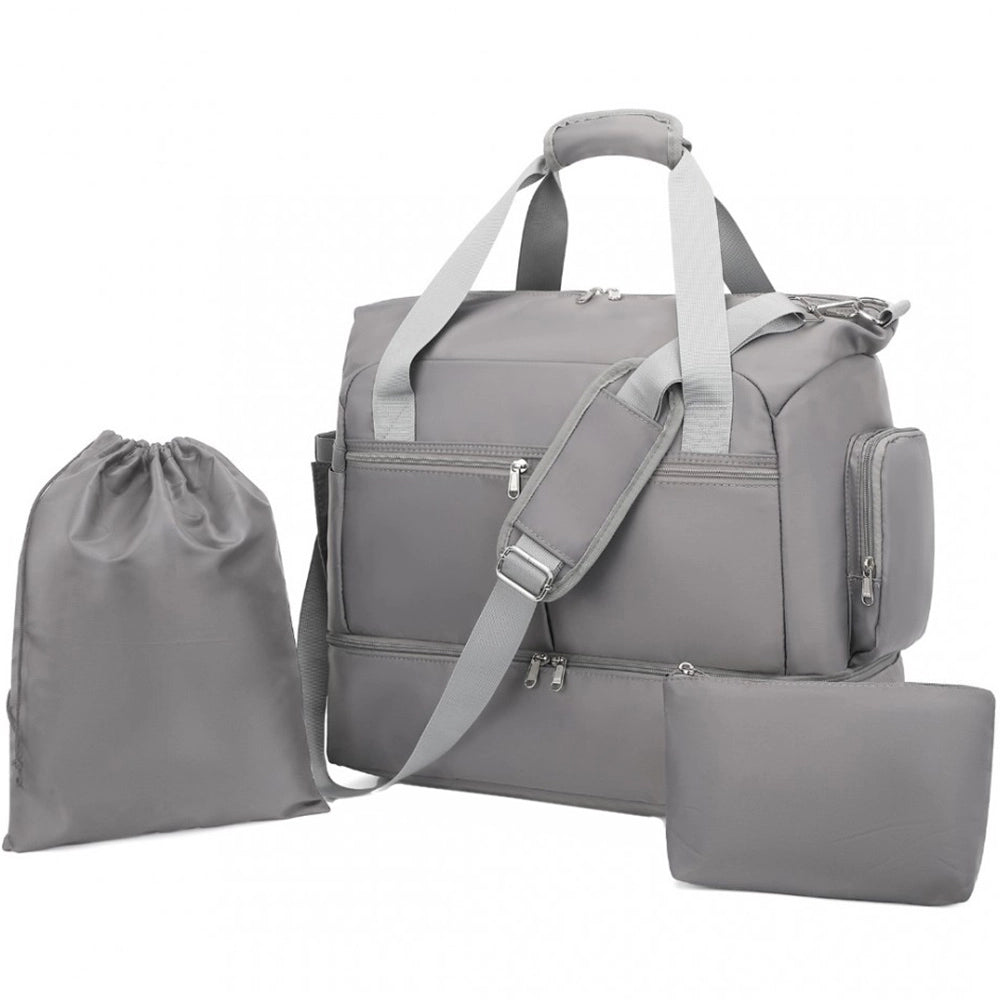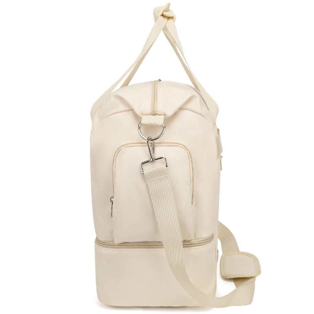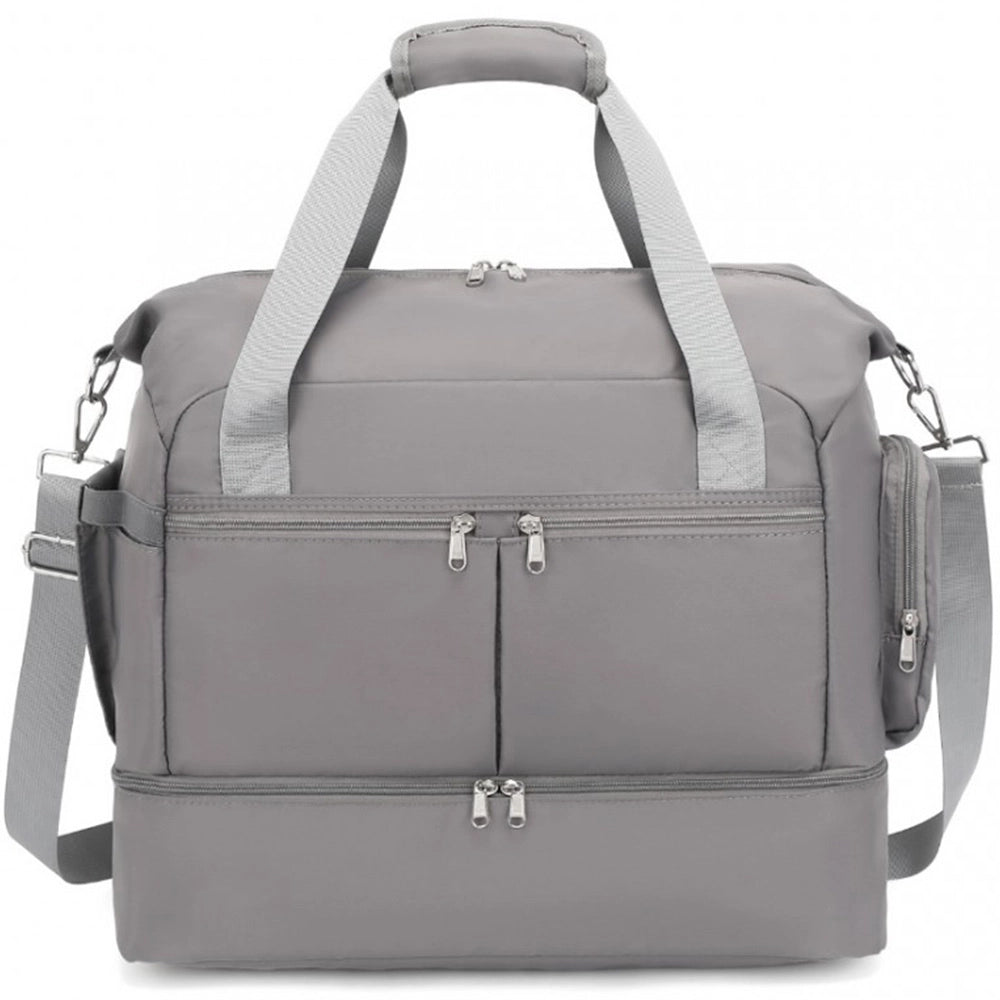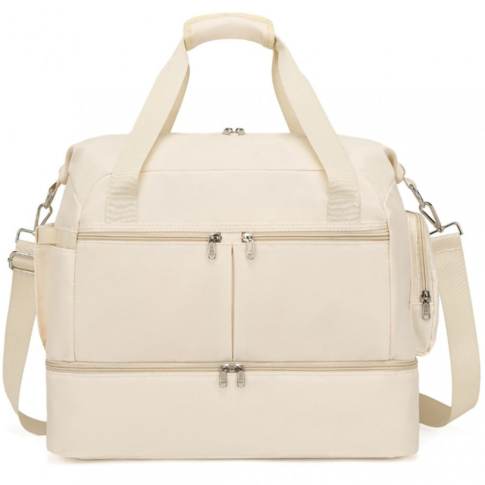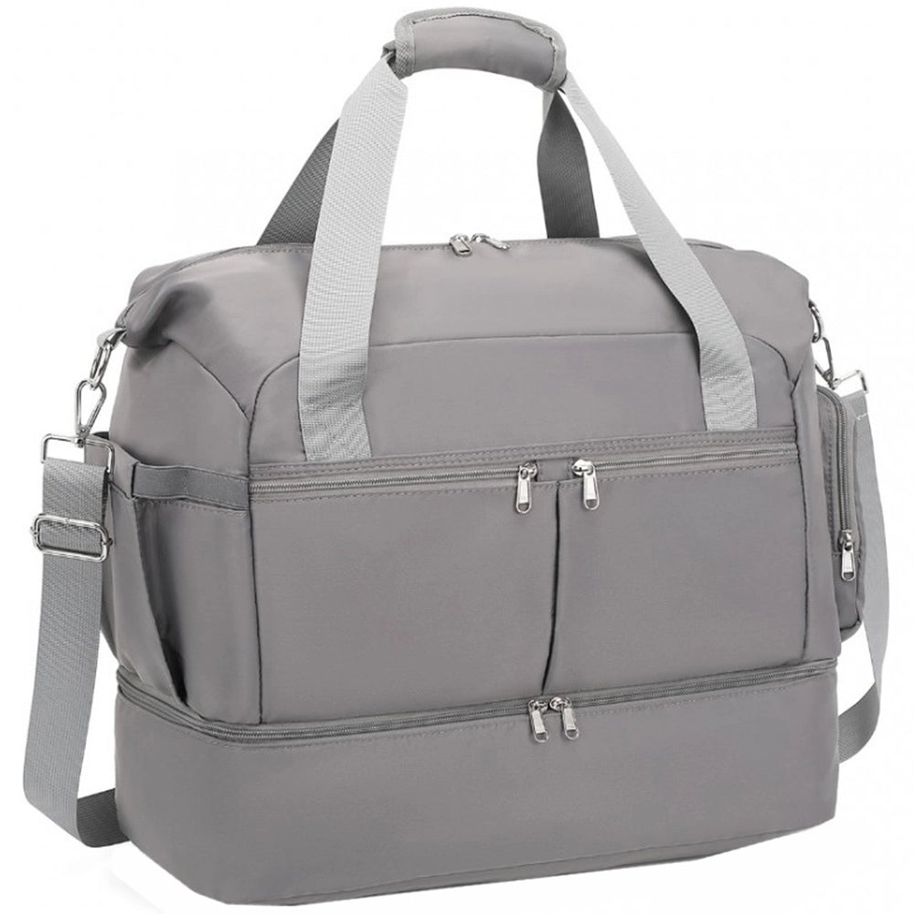 Compartimentul principal contine doua buzunare frontale pentru articole mici, completate de un buzunar din spate cu fermoar care asigura o separare eficienta intre umezeala si uscata. Partea inferioara a gentii are o caracteristica inovatoare: un compartiment independent pentru pantofi cu orificii de aerisire, accesat printr-un fermoar dublu, asigurandu-va ca pantofii raman separati de haine. Exista un alt buzunar