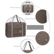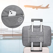 Gentile noastre de calatorie pot fi impachetate intr-o dimensiune mai compacta atunci cand nu sunt utilizate, facandu-le usor de impachetat si transportat. Compartimentul principal este accesibil printr-un fermoar, doua buzunare de pe ambele parti ale gentii. Un manson special pentru carucior din aceasta geanta de zbor permite husului sa alunece peste manerul bagajului.