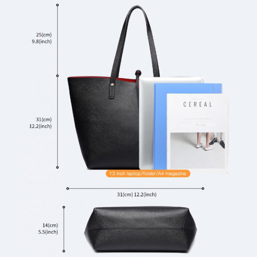 Geanta pentru femei, din piele ecologica de calitate inalta. Partea cool a acestei genti este faptul ca este reversibila, ceea ce ofera posibilitatea de a fi asortata cu orice tinuta. Este foarte spatiosa si perfecta pentru scoala, universitate, birou, cumparaturi, in ea incap laptop de 13" si caiete A4.