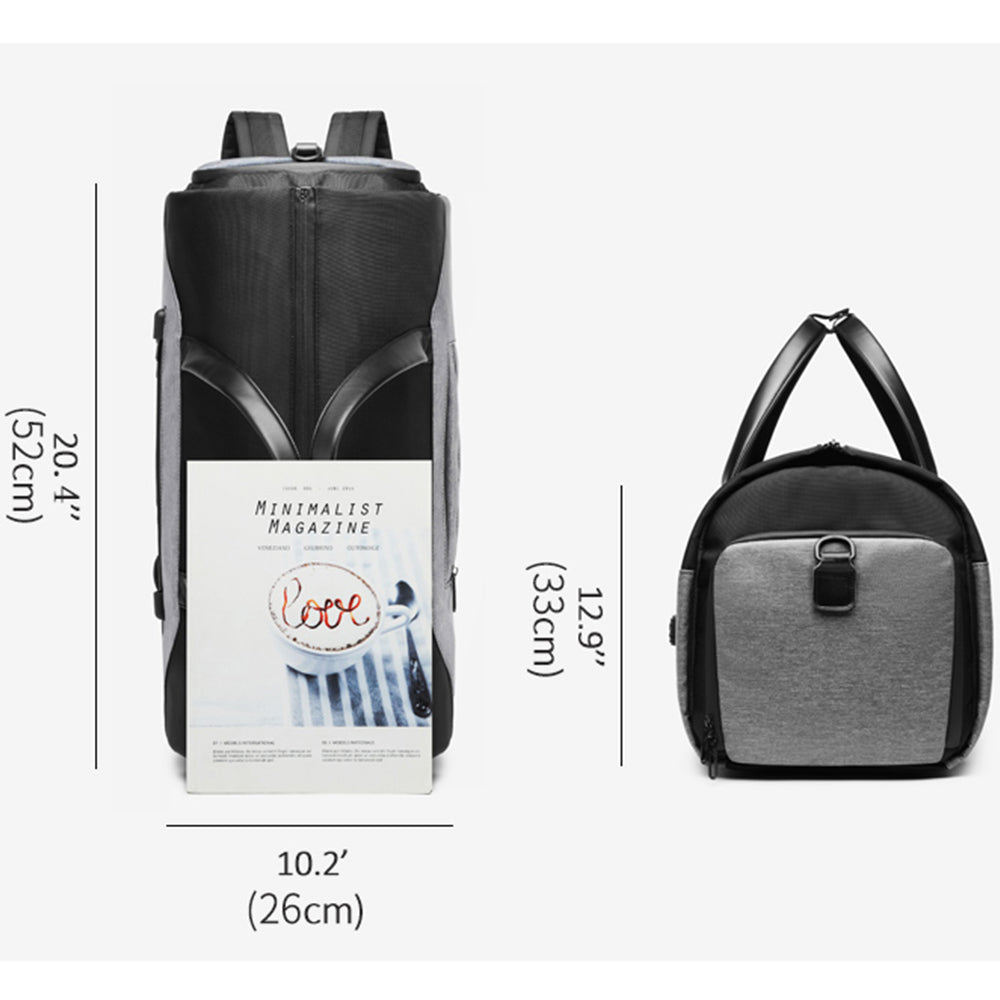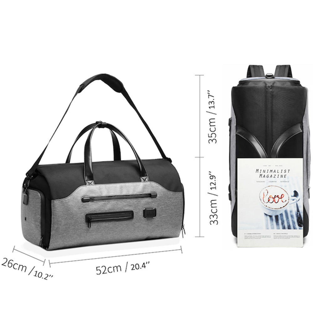 Pe langa costum si incaltaminte, poti transporta si accesoriile de care ai nevoie, geanta fiind suficient de spatioasa cu multe compartimente si buzunare. Toate aceste elemente sunt armate suplimentar cu mai multe cusaturi. Aceasta geanta se poate purta pe umar in mana sau pe spate in forma de rucsac. Are 2 manere largi pentru transportul in mana, 1 bareta detasabila pentru transportul pe umar, ajustabila 85 - 140 cm si 2 barete late, pentru a fi purtata in spate ca rucsac, baretele pot fi ascunse intr-un buzunar din spate in cazul cind doriti sa purtati deanta in mina sau pe umar.