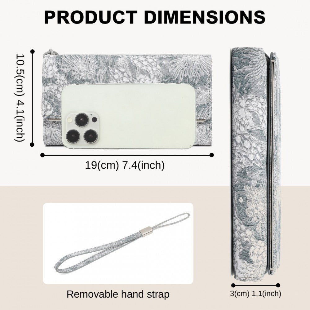 Creat pentru a combina rafinamentul cu practicitatea, acest portofel este companionul ideal pentru femeile moderne care apreciaza stilul si functionalitatea. Suprafata sa cu model floral emana o eleganta atemporala, fiind un obiect deosebit pentru orice garderoba. Portofelul se inchide cu o capsa metalica si are un interior bine gandit pentru organizare optima.
