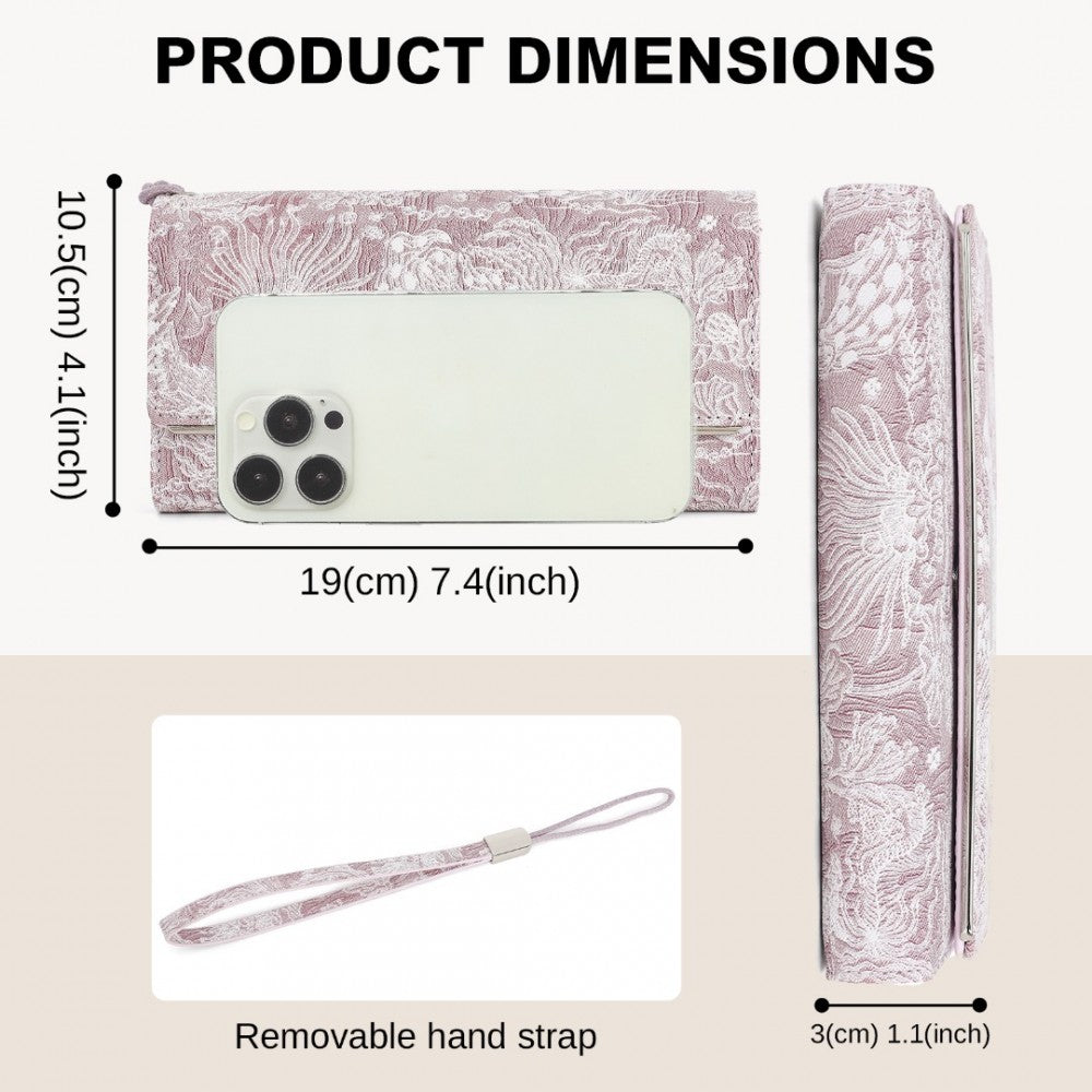 Portofel mare pentru dama, cu maner detasabil, imprimeu floral, sloturi pentru carduri si documente, buzunar cu fermar, Miss LULU, WTM2448
