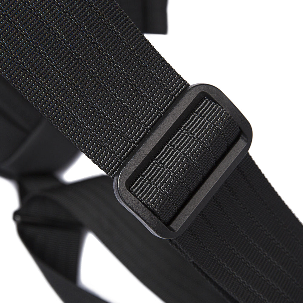 O curea lata de umar va va proteja umarul de oboseala. Este reglabil in lungime si, datorita carabinerului, isi poate schimba pozitia, permitandu-va sa purtati produsul pe piept pe diagonala dreapta sau stinga si/sau pe spate. Cureaua are o bucla pentru atasarea ochelarilor de soare si un buzunar secret pentru cardurile bancare.