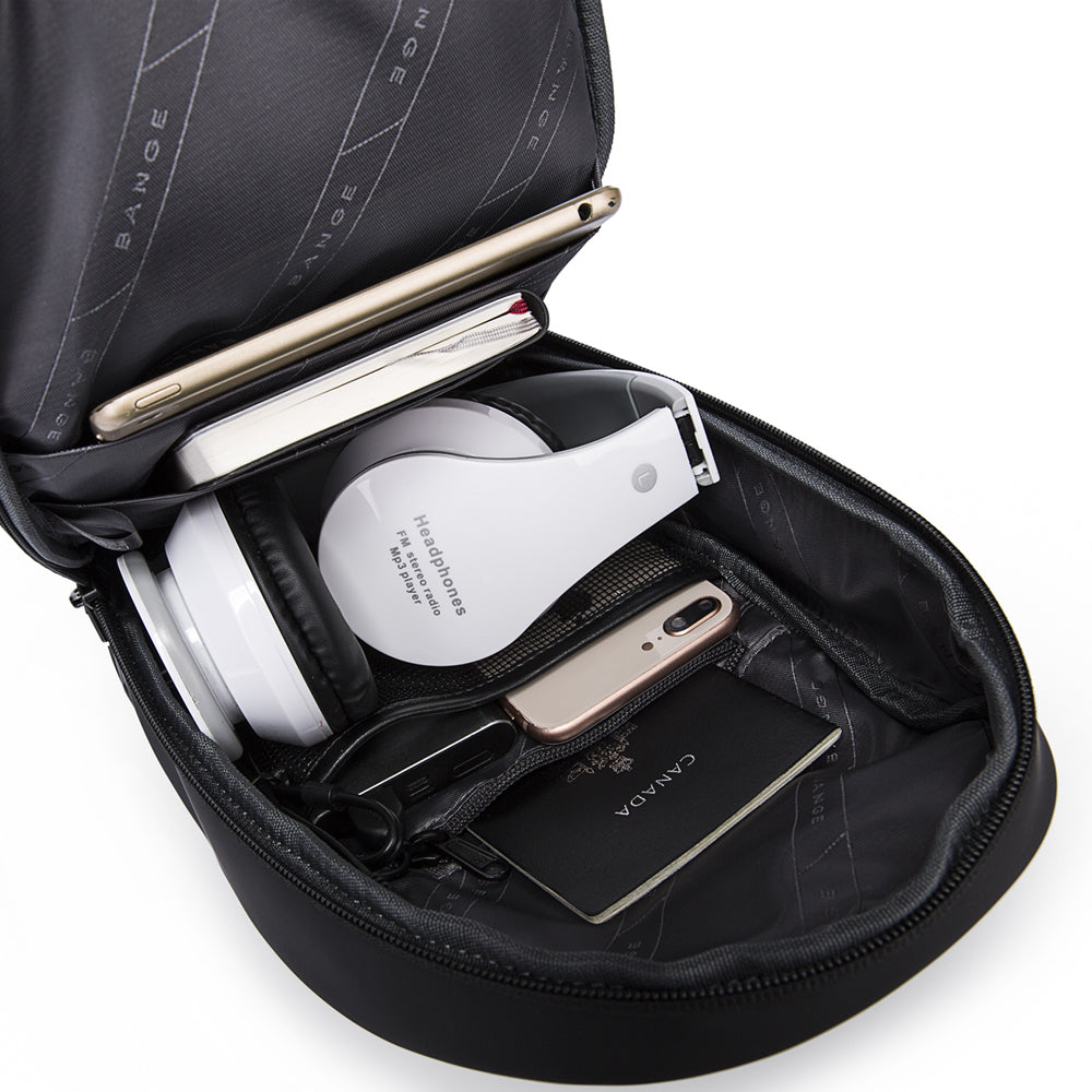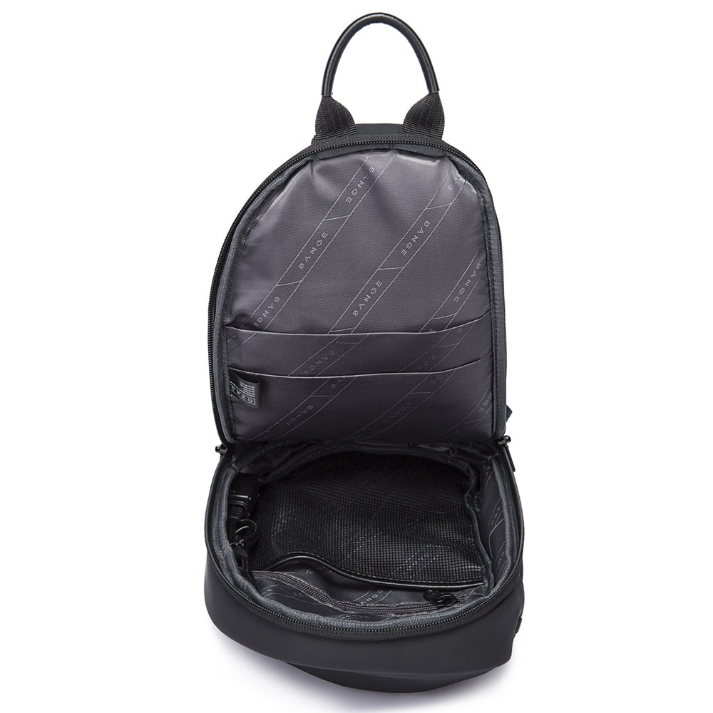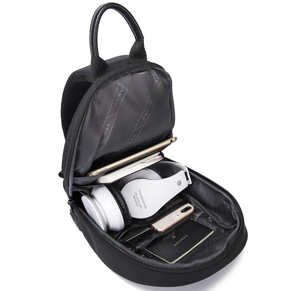Rucsac mic crossbody asimetric, cu port USB, din poliester este rezistent la stropi, bareta ajustabila stinga dreapta, BANGE BG7306