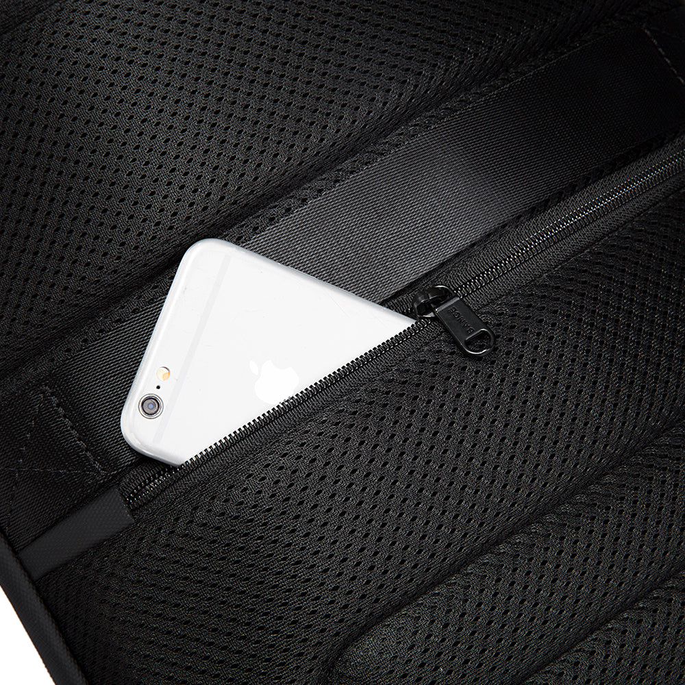 Compartimentul principal poate gazdui cu usurinta tot ce aveti nevoie: rechizite de birou, telefoane mobile, accesorii pentru mobil si computer de 14 & 15.6 inch. Exista, de asemenea, mai multe buzunare de dimensiuni diferite pentru obiecte mici. Se inchide cu fermoar dublu.