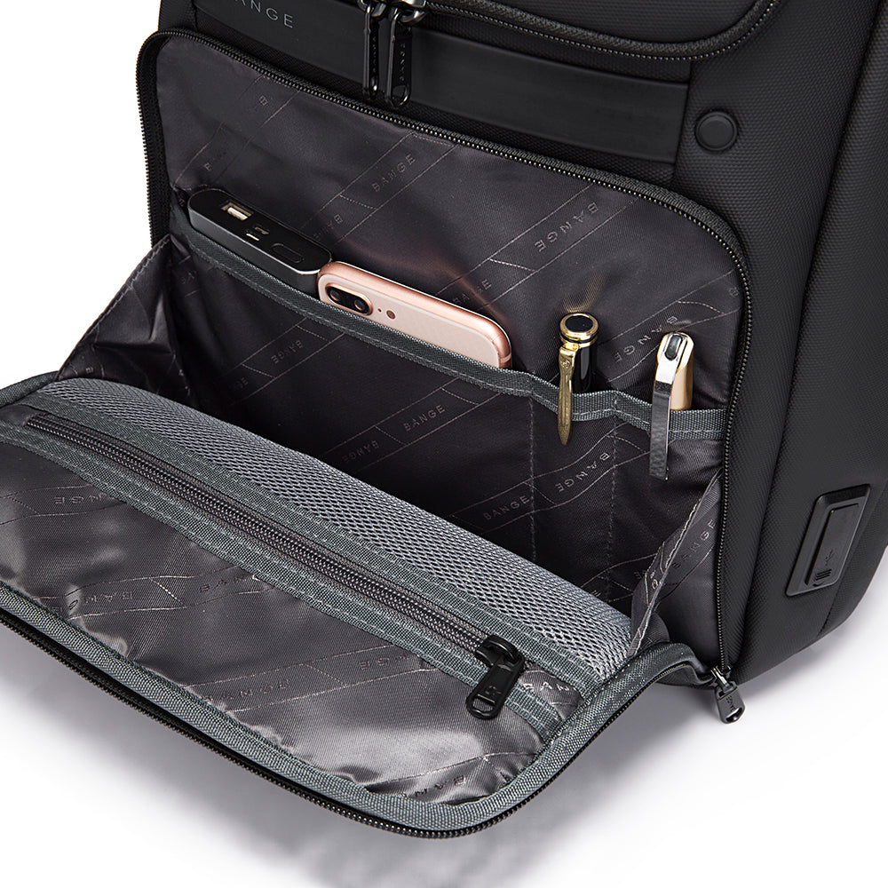 Rucsac unisex pentru laptop 15.6 inch, din poliester rezistent la stropi si zgirieturi, cu port USB si buzunar antifurt, BANGE BG7261