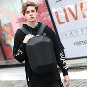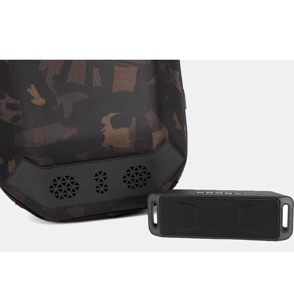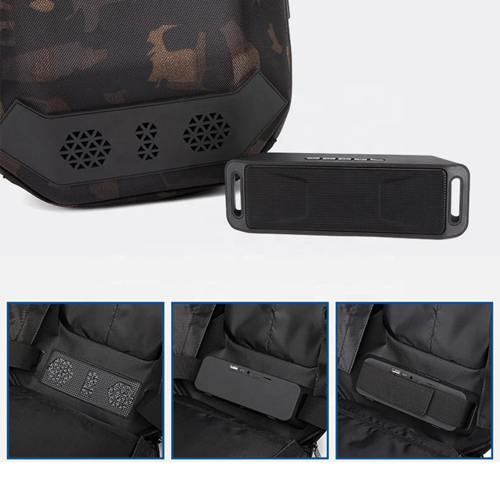 Rucsac cu 2 bretele de zi futuristic, din materiale speciale de ultima generatie, fermoar rezistent la uzura, conceput cu o durata de pina la citiva ani. Rezistent la apa si zgirieturi, rezistent la stropi, cu boxa portabila inclusa, boxa poate fi folosita si fara rucsac. Rucsacul are doua barete late pentru confort maxim, reglabile in lungime, si o curea ajustabila pentru sustinere. Manerul metalic pozitionat pe marginea superioara asigura transportul comod in diferite ocazii.