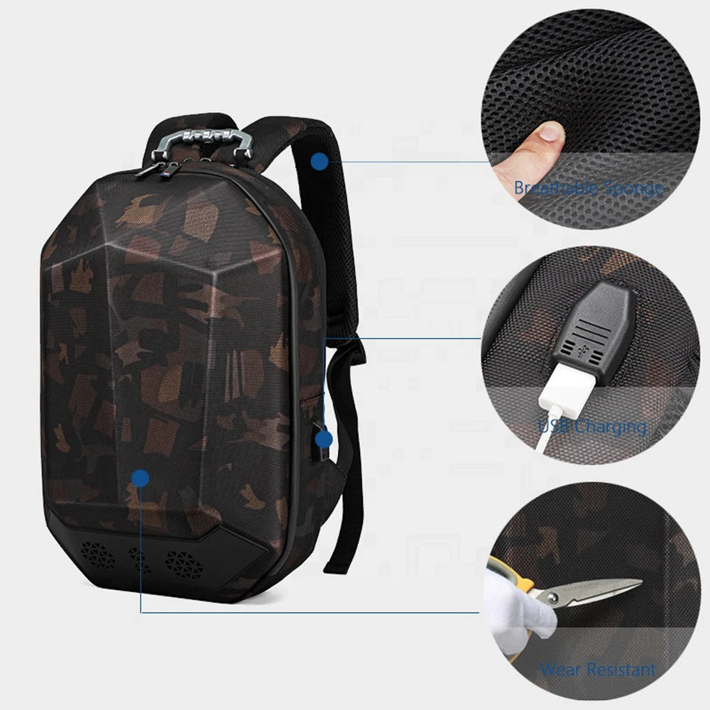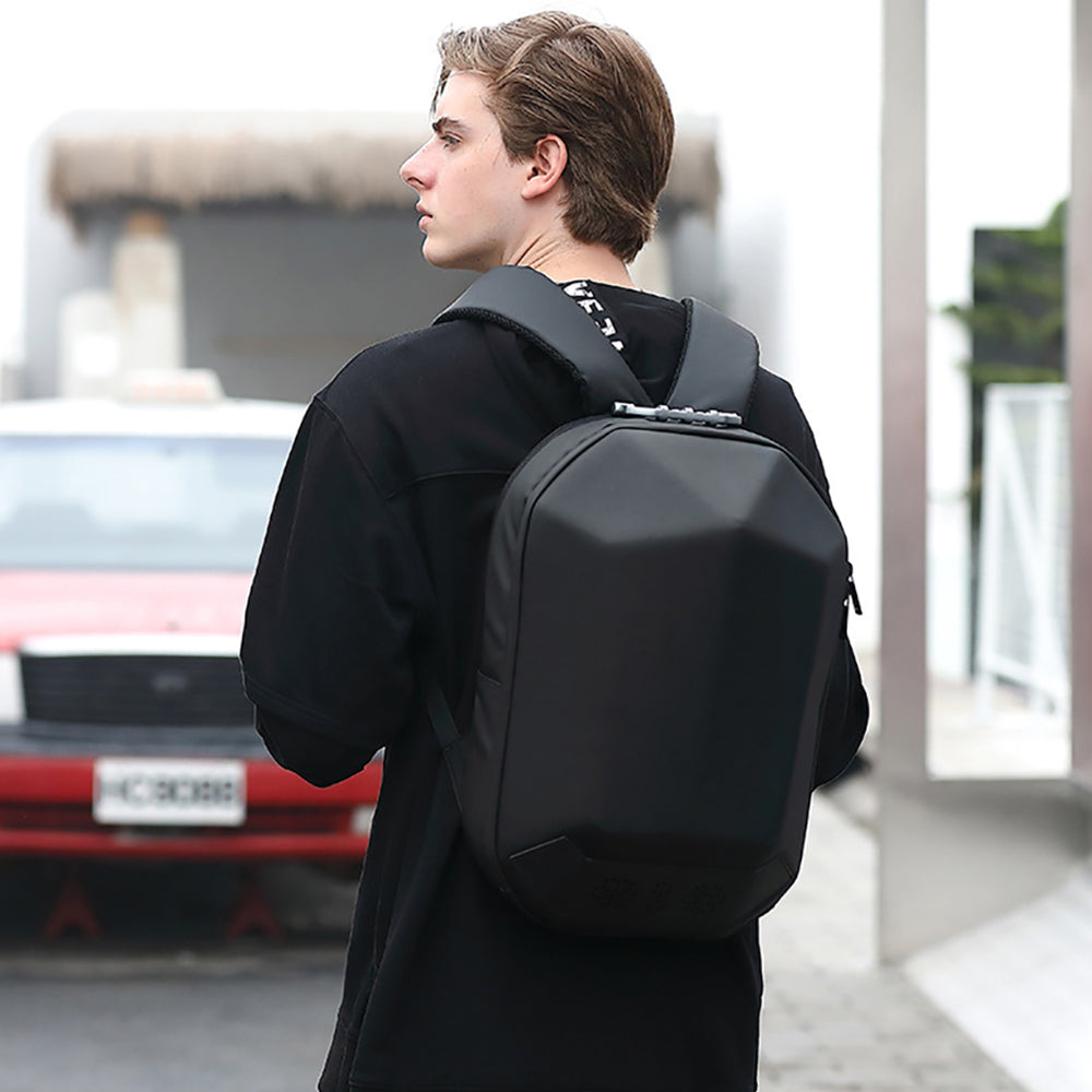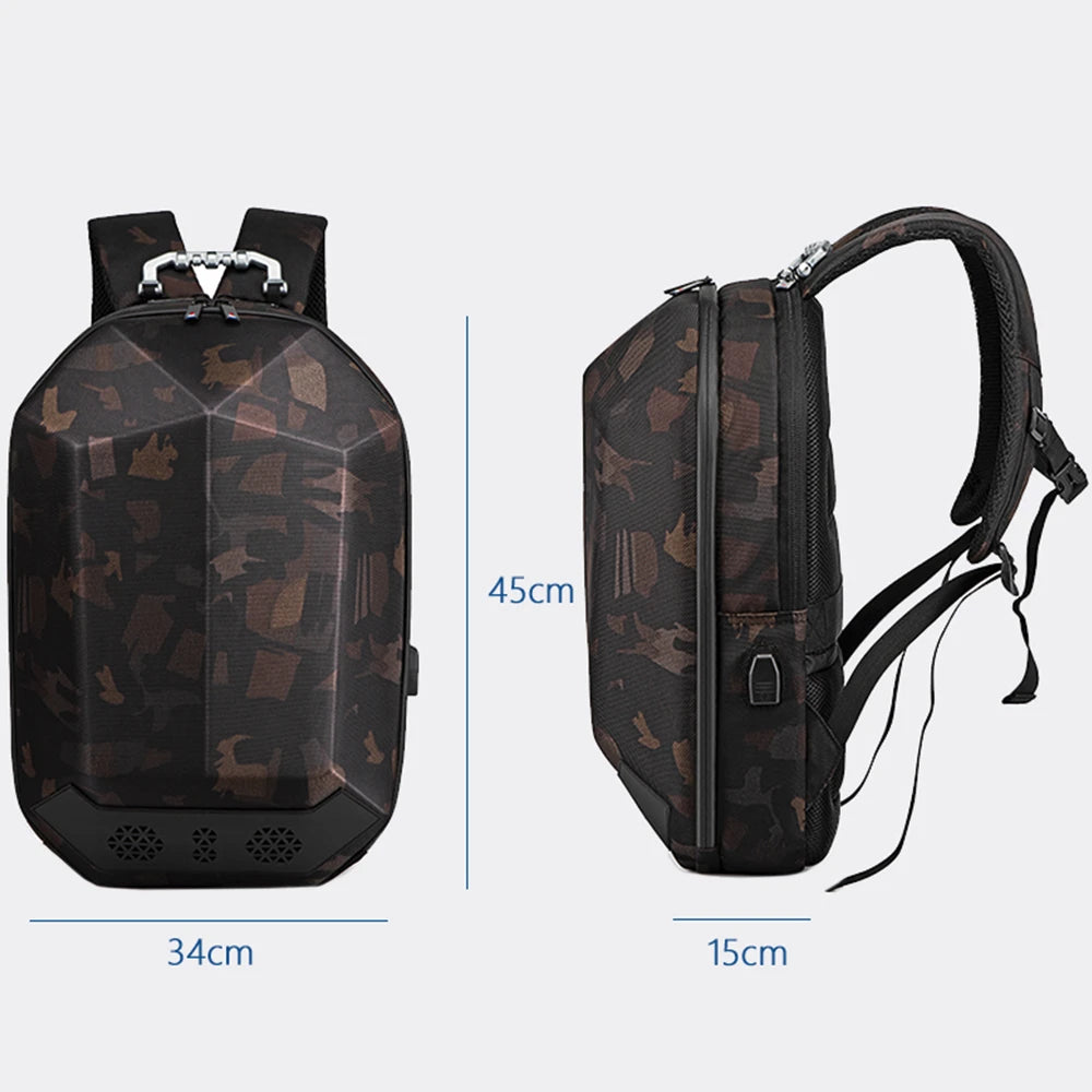 Rucsac smart pentru laptop 15.6 inch, carcasa tare Hardshell, boxa inclusa, antifurt, port USB, rezistent la stropi, fixare de valiza, OZUKO OZ9205