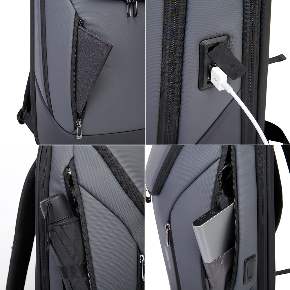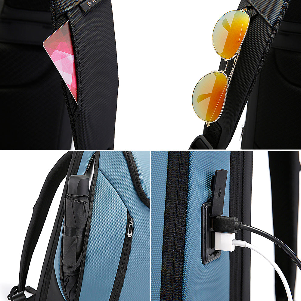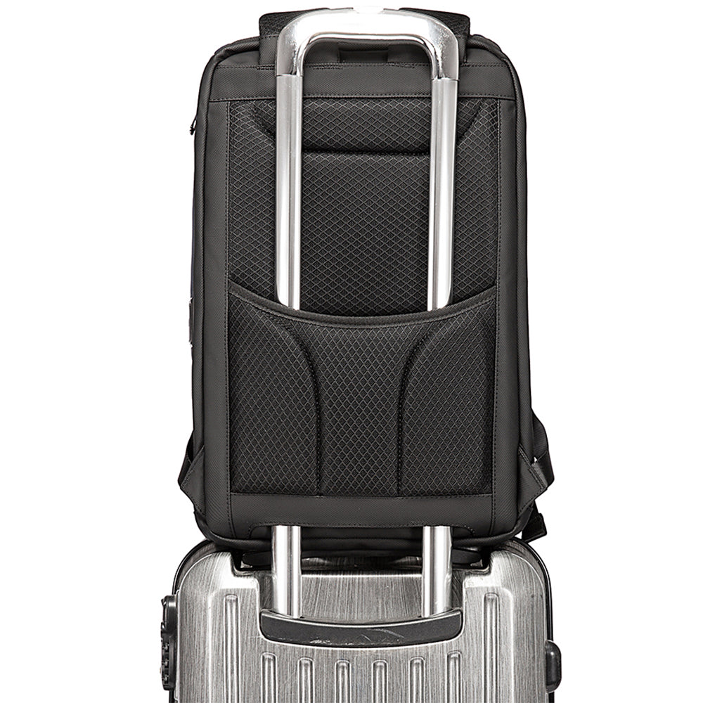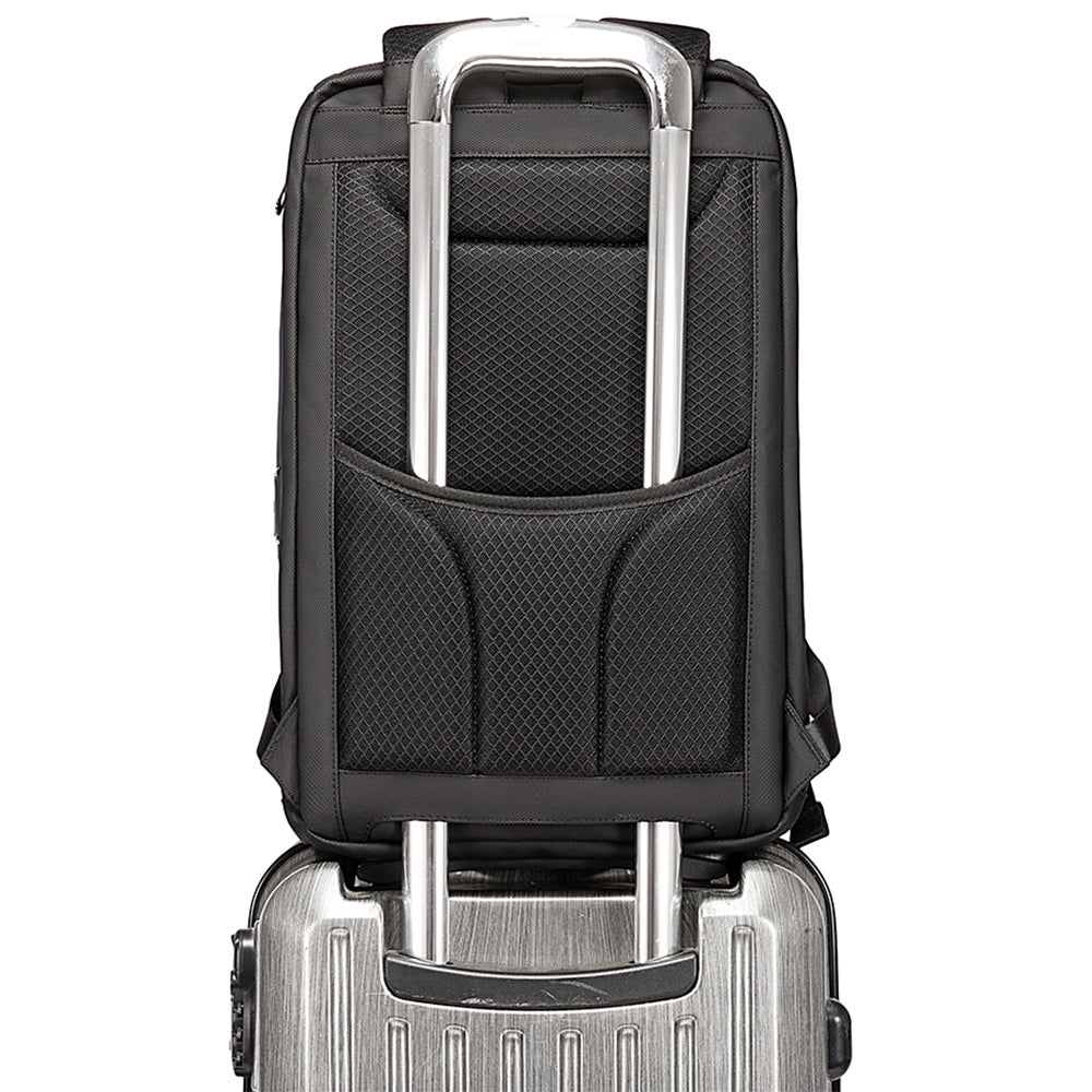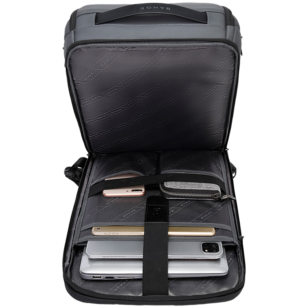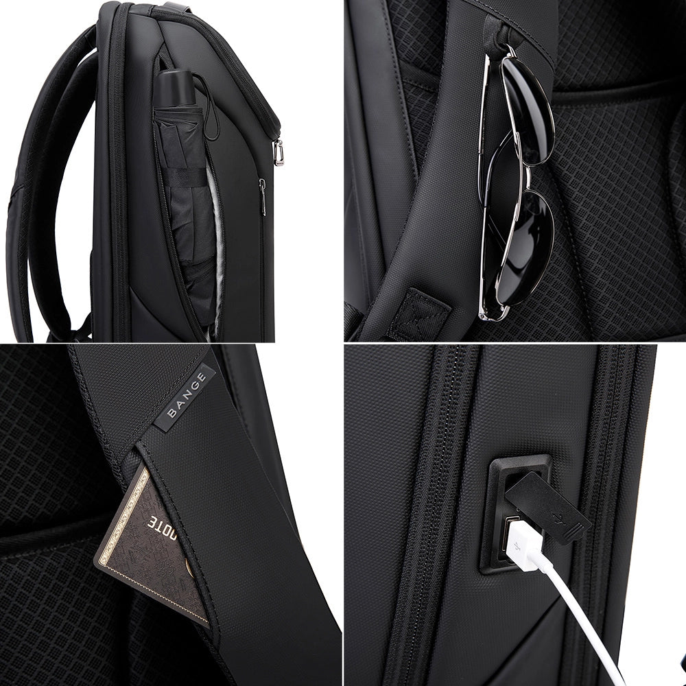 Rucsac smart, multifunctional, cu port USB, compartiment laptop 15,6 inch si tableta, din poliester rezistent la stropi de apa, sistem fixare pe valiza, unisex BANGE BG2517
