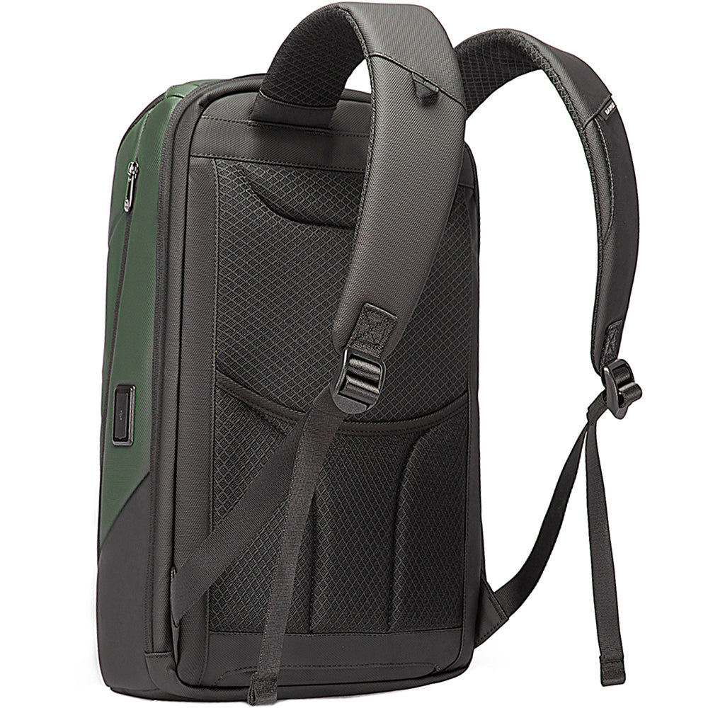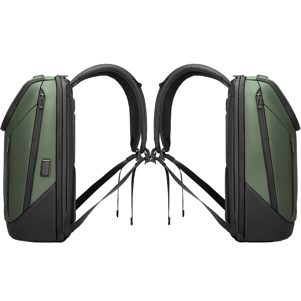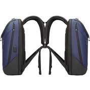 Are 2 compartimente principale cu fermoare dublu. Compartimentul principal 1 poate gazdui cu usurinta tot ce aveti nevoie: rechizite de birou, telefoane mobile, accesorii pentru mobil, compartimentul principal 2 este destinat pentru gadgeturi si laptop de 15,6 inch. Exista, de asemenea, mai multe buzunare de dimensiuni diferite pentru obiecte mici. Se inchide cu fermoar dublu.