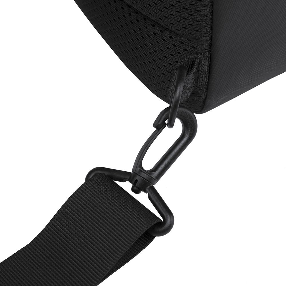 Bareta lata de umar va va proteja umarul de oboseala. Este reglabil in lungime si, datorita carabinerului, isi poate schimba pozitia, permitandu-va sa purtati produsul pe piept pe diagonala dreapta sau stinga si/sau pe spate. Cureaua are o bucla pentru atasarea ochelarilor de soare si un buzunar secret pentru cardurile bancare.