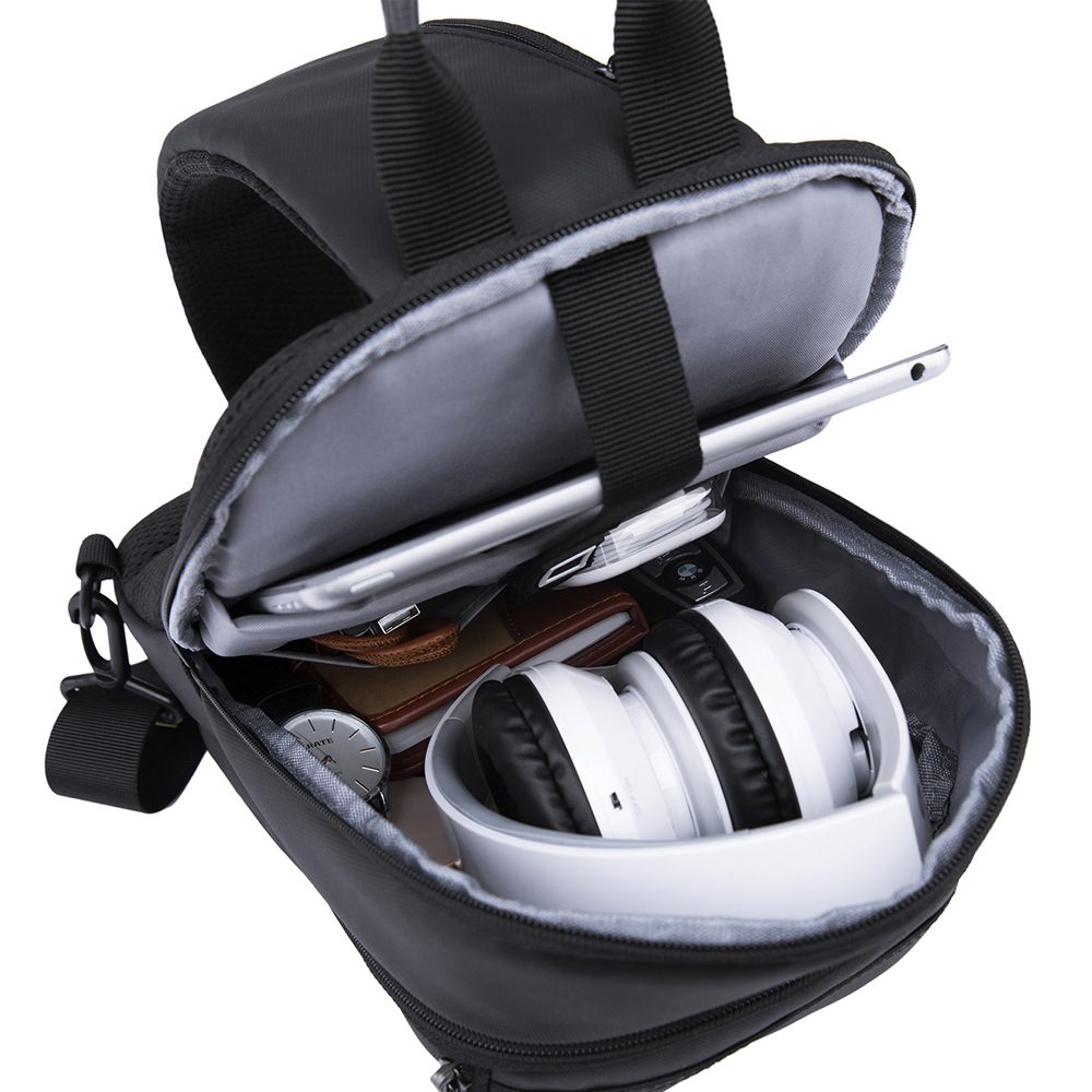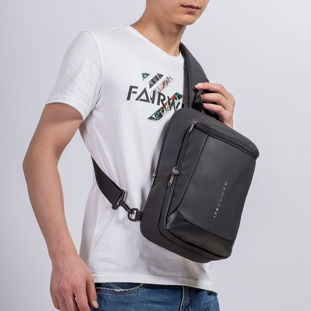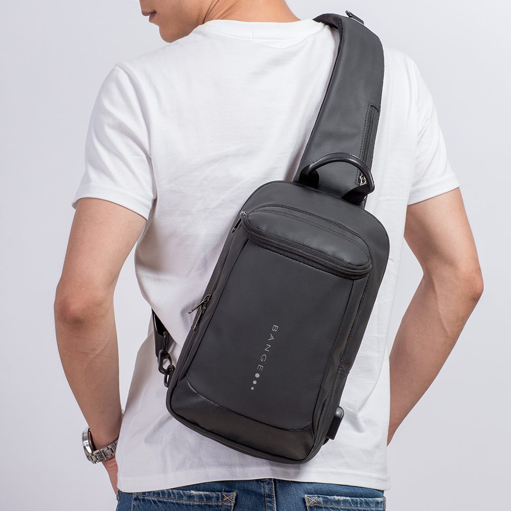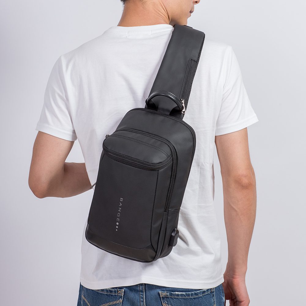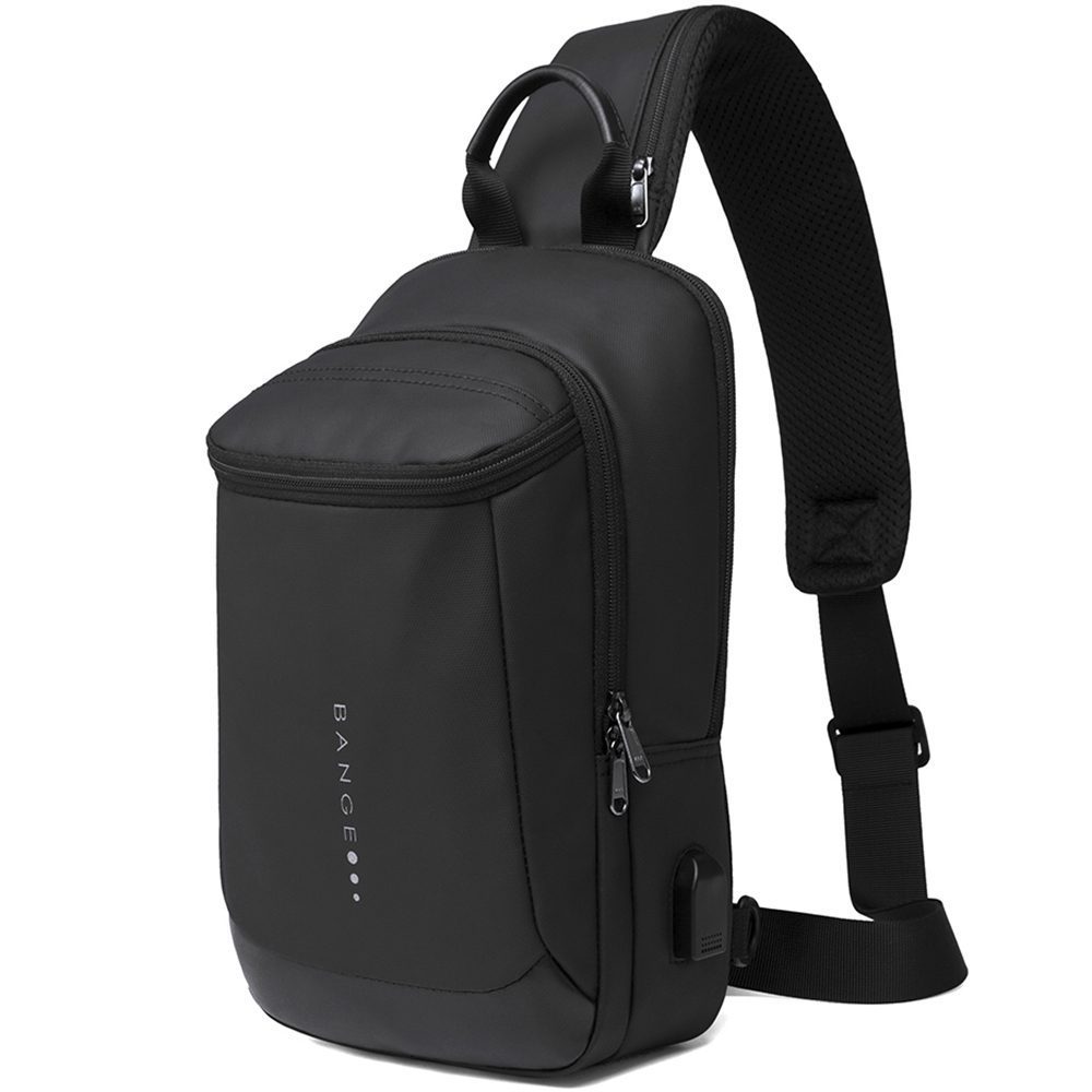 Rucsac cross body unisex, cu port USB si buzunar ascuns pe spate, din poliester rezistent la stropi, BANGE BG1910