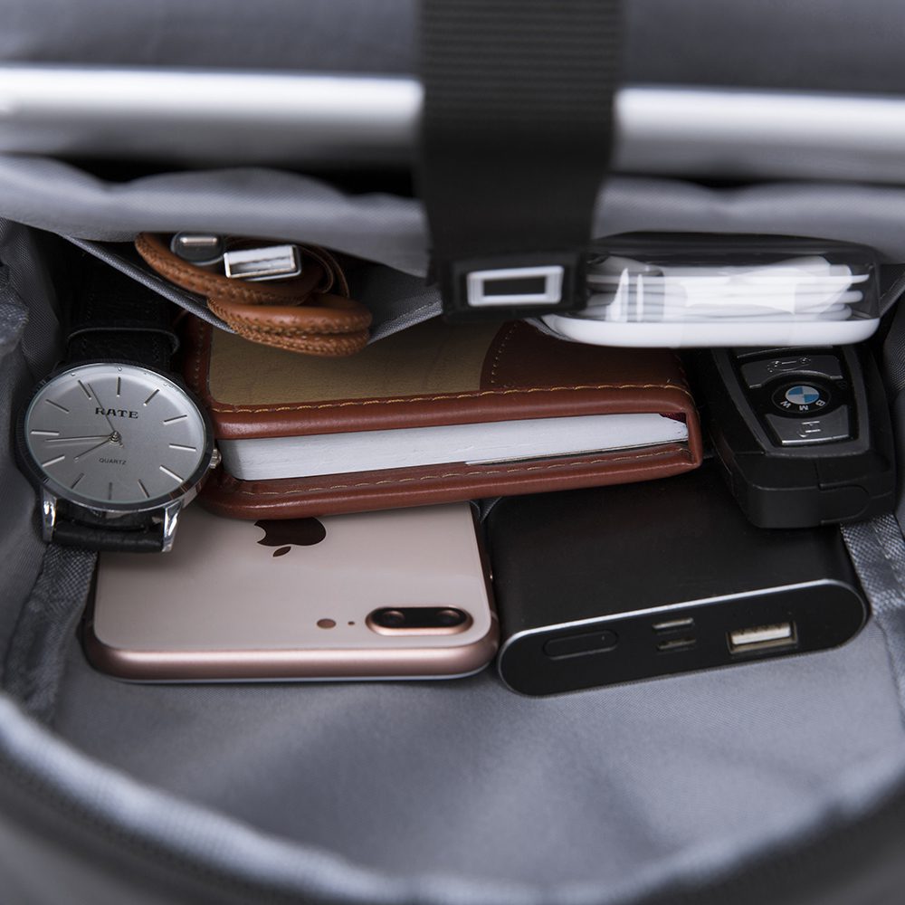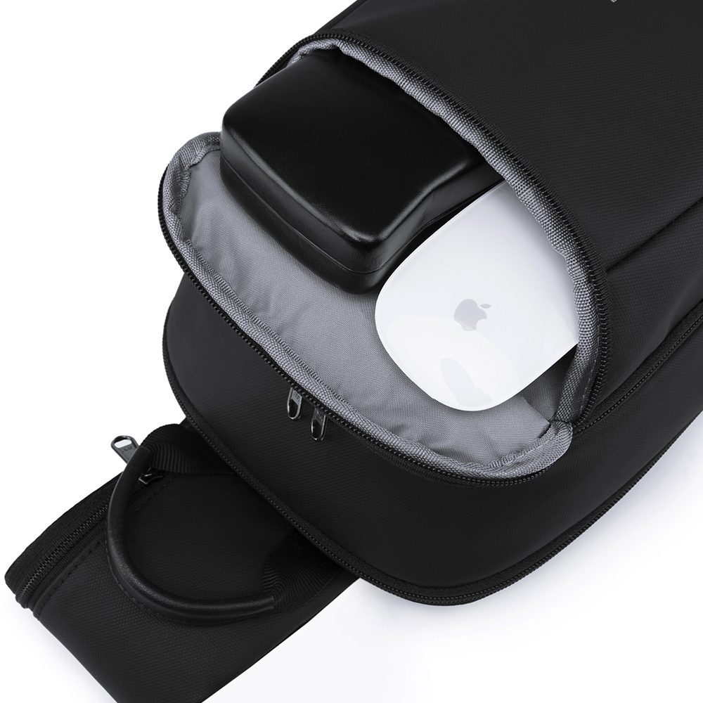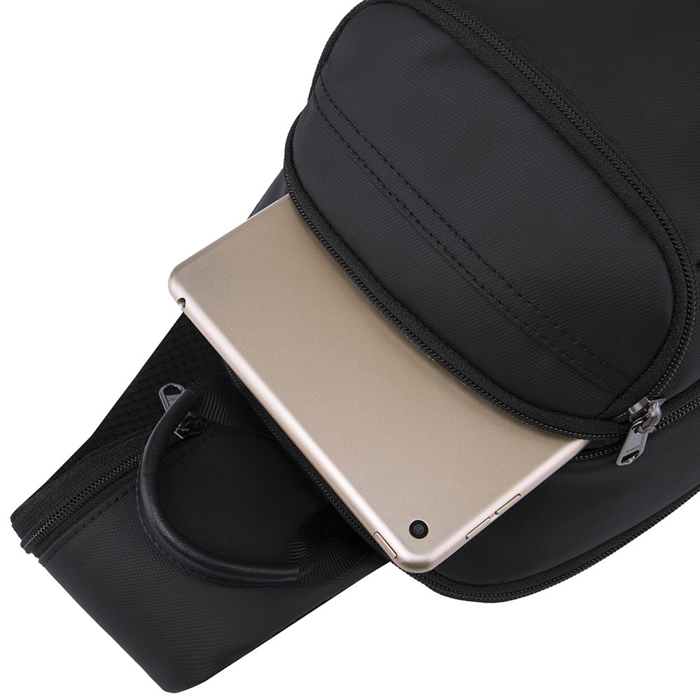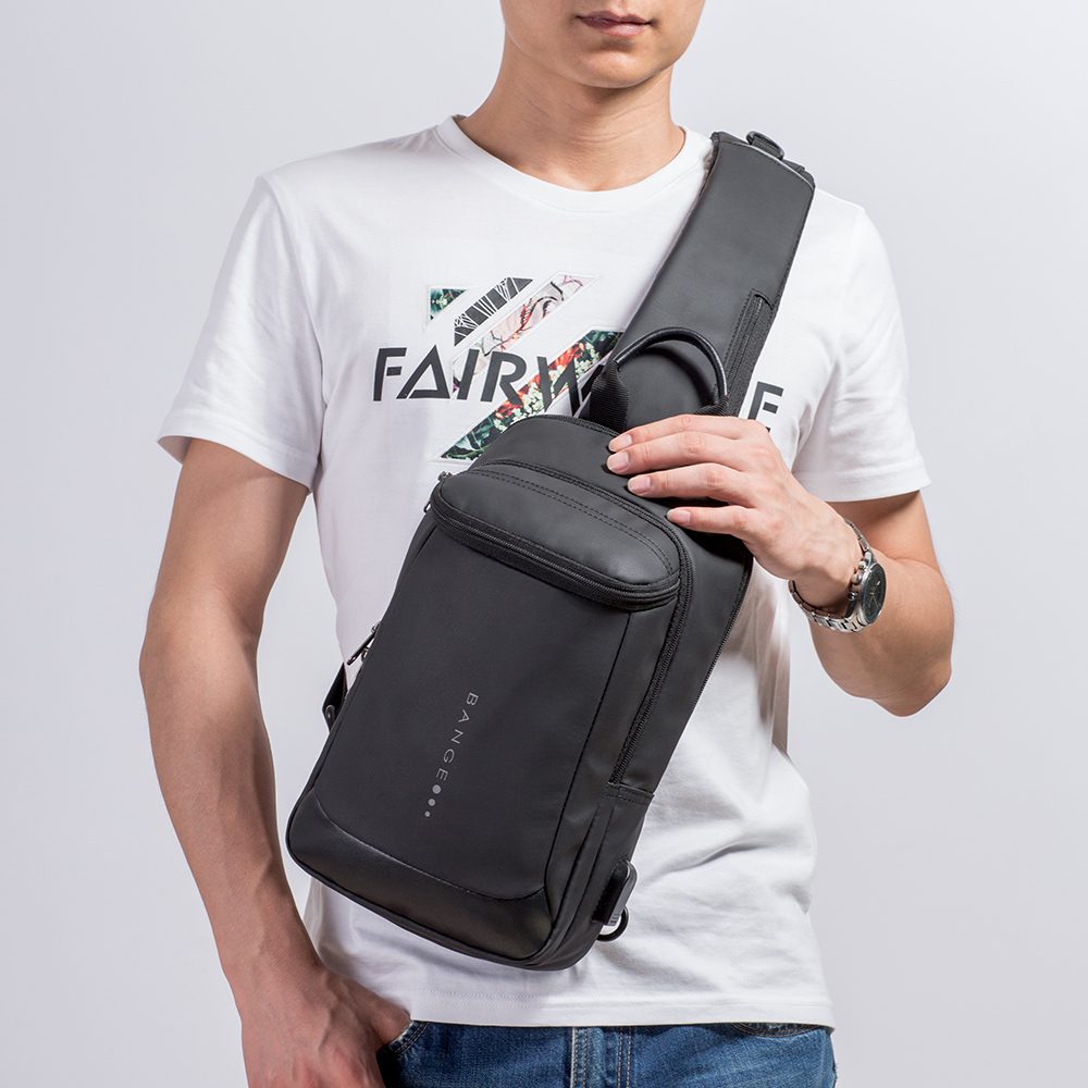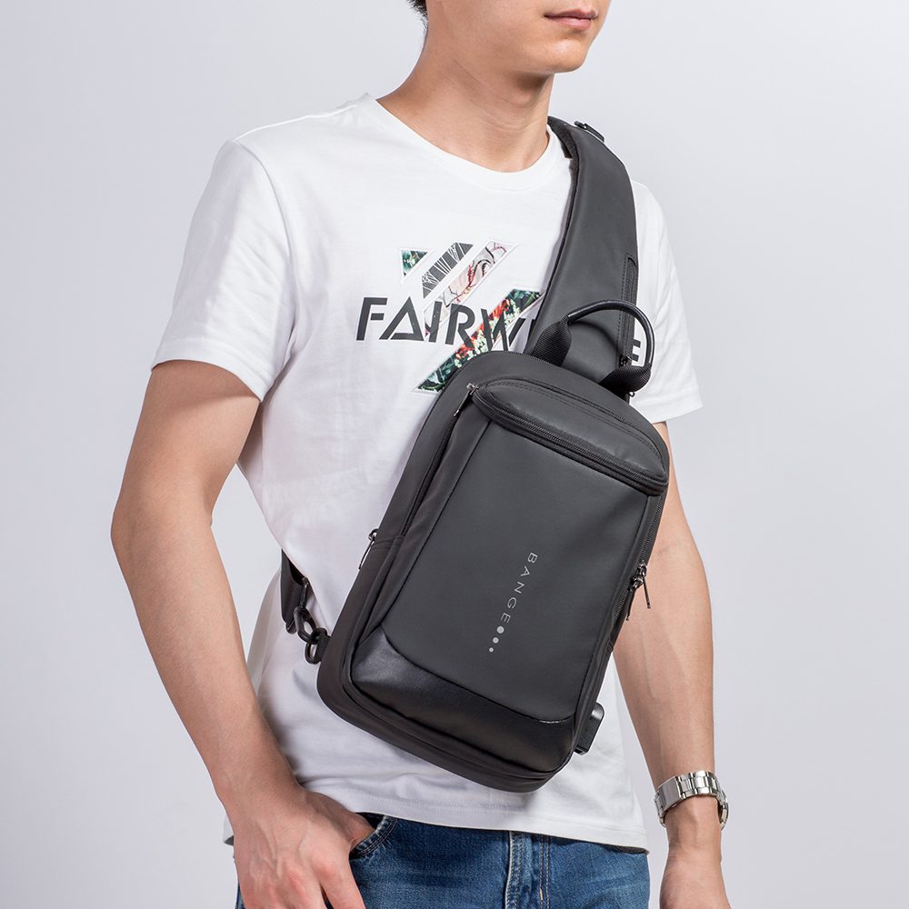 Rucsac cross body unisex, cu port USB si buzunar ascuns pe spate, din poliester rezistent la stropi, BANGE BG1910