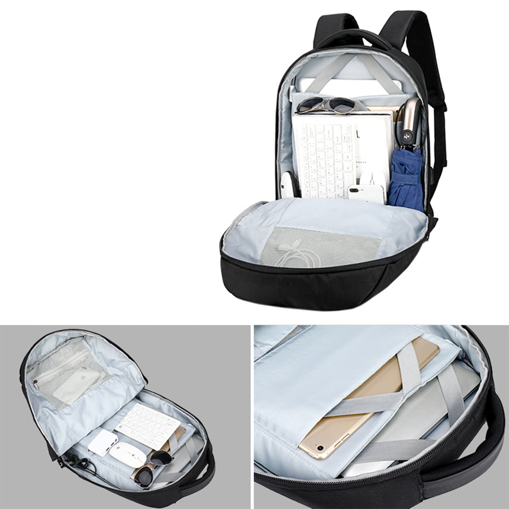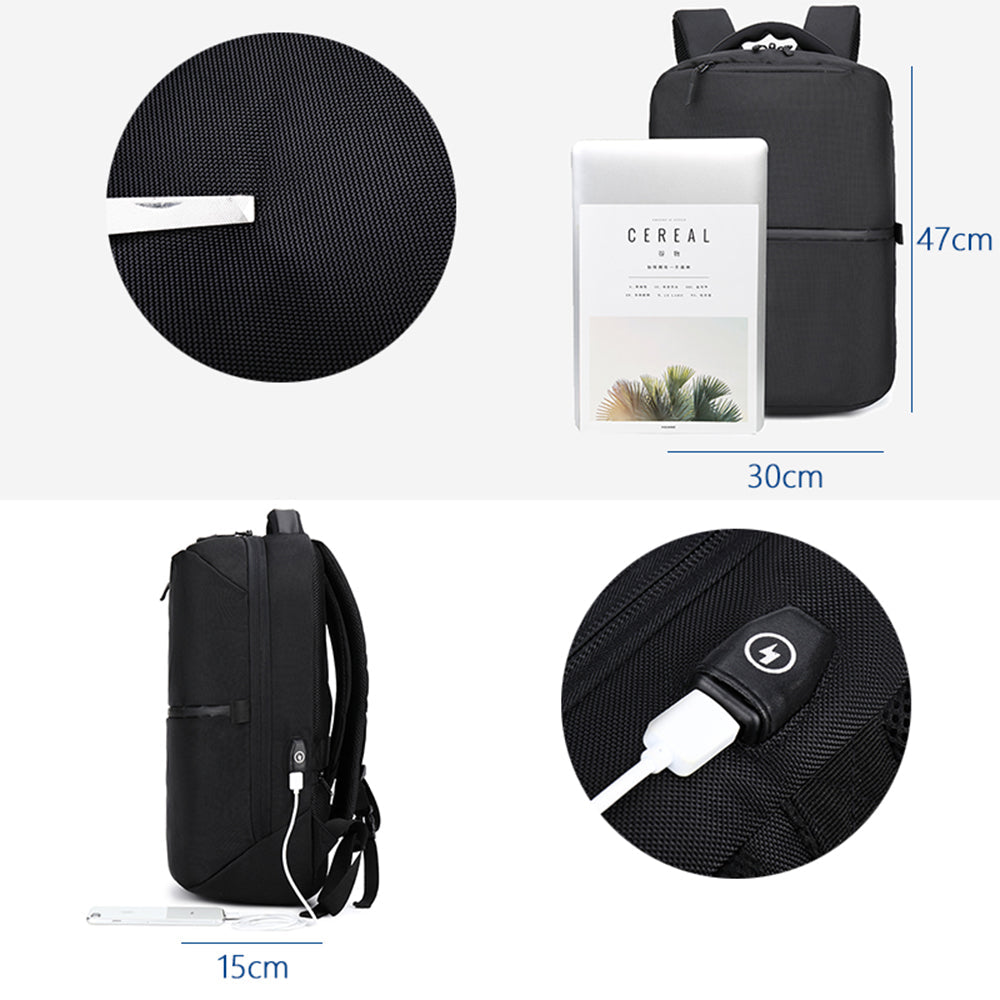 Rucsac smart casual pentru laptop de 15.6 inch, unisex, cu port USB si lacat TSA, din poliester este rezistent la stropi, buzunar ascuns pe spate, OZUKO OZ9200