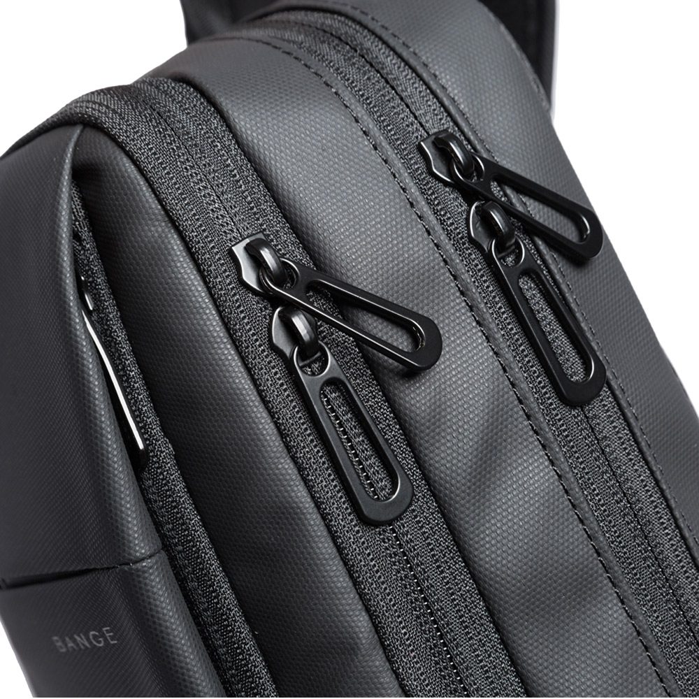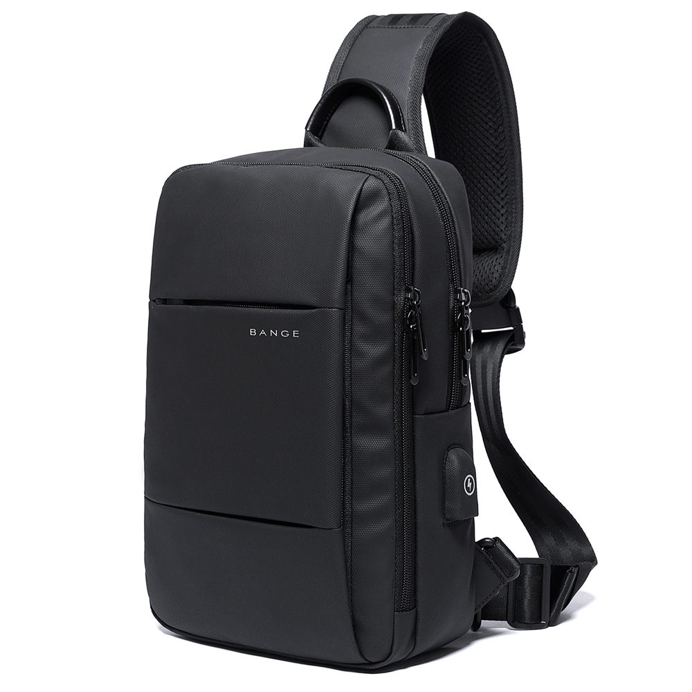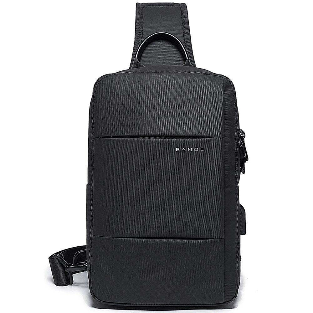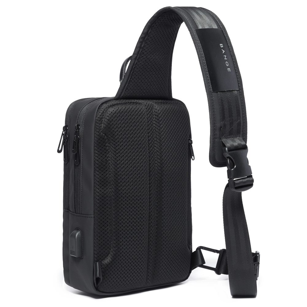 Rucsac crossbody/de umar casual, cu doua compartimente si port de incarcare USB, Bange, Negru